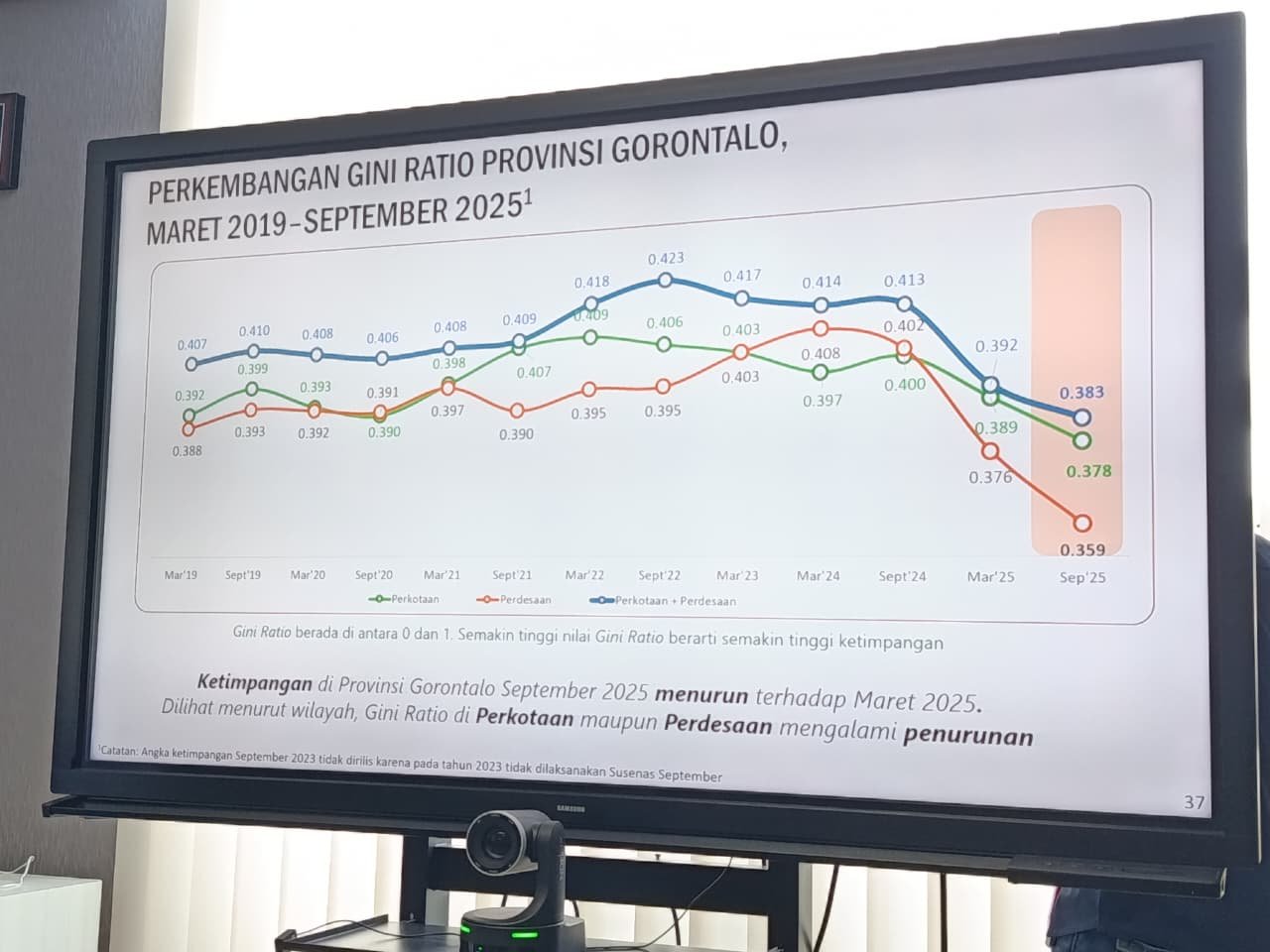 Menurut Kepala BPS Provinsi Gorontalo, Wateki, saat merilis berita resmi statistik, persentase penduduk miskin di Provinsi Gorontalo pada September 2025 berada di angka 12,62 persen. Angka ini menunjukkan tren positif dengan penurunan sebesar 0,62 persen poin dibandingkan kondisi pada Maret 2025.