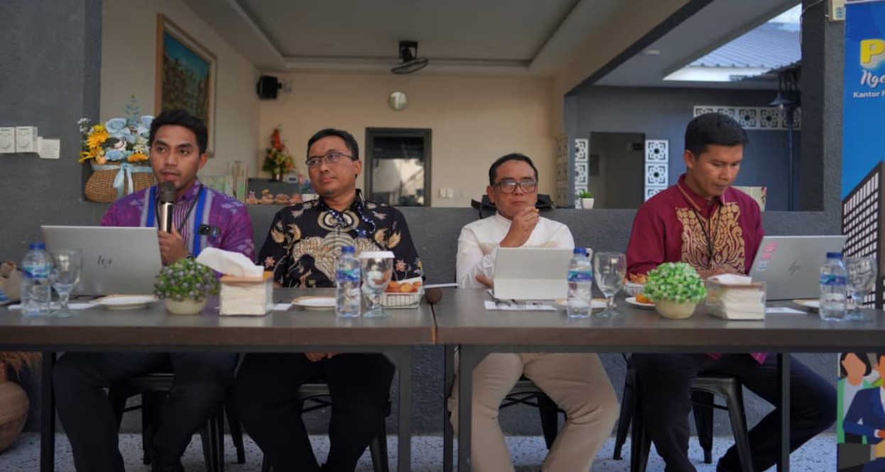 Kepala KPwBI Gorontalo Bambang Satya Permana saat berdialog dengan beberapa media mitra BI Gorontalo mengenai persiapan HACF dan GKK 2025. Foto/ Putra KPwBI Gorontalo.