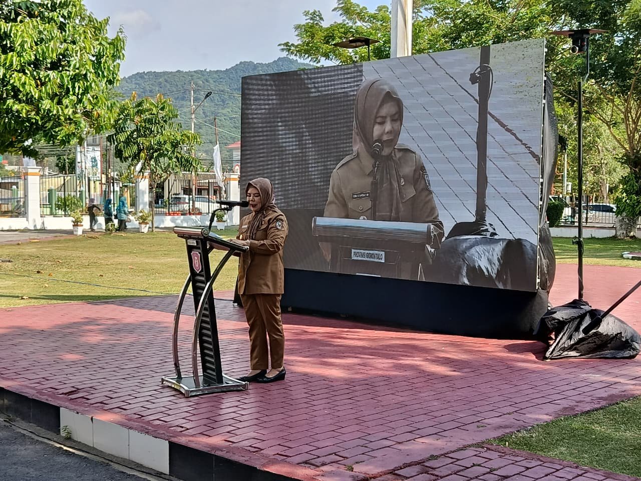 INDO24JAM.ID, Gorontalo – Wakil Gubernur Gorontalo, Idah Syahidah Rusli Habibie, mengikuti pelaksanaan Akad Massal Kredit Usaha Rakyat (KUR) bagi 8.000 pelaku UMKM di 38 provinsi se-Indonesia yang diselenggarakan secara virtual di halaman Rumah Dinas Gubernue Gorontalo (21/10/2025) dan dihadiri langsung oleh Presiden RI via Zoom.