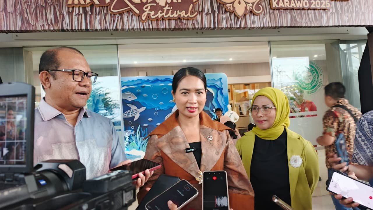 Wamen Pariwisata saat diwawancarai wartawan saat pelaksanaan Gorontalo Karnaval Karawo 2025. Foto/Indo24jam.id