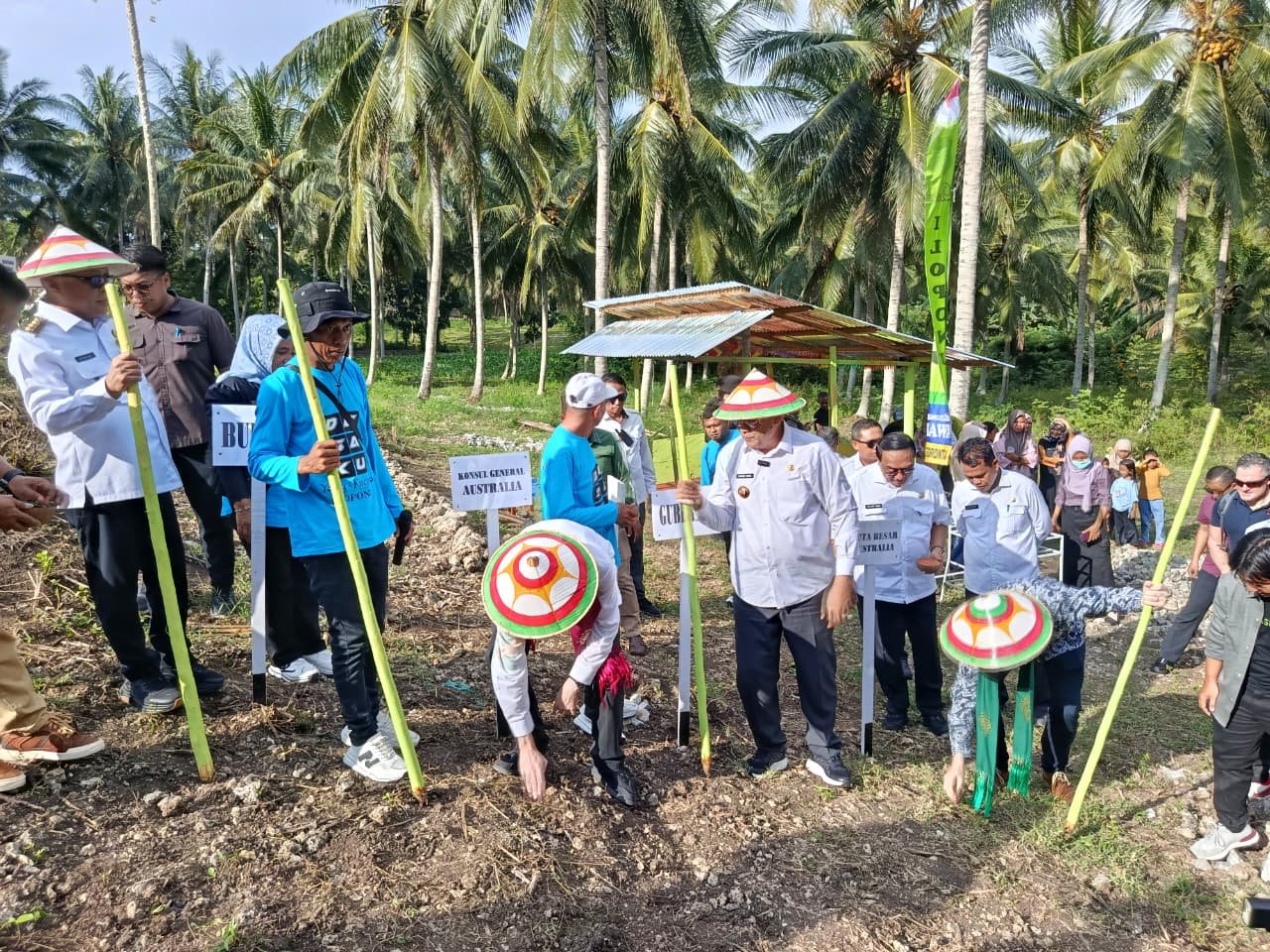 INDO24JAM.ID, Gorontalo – Gubernur Gorontalo, Gusnar Ismail, bersama Duta Besar Australia, Mr. Rod Brazier, melakukan penanaman jagung simbolis di Desa Iloponu, Kecamatan Tibawa, Kabupaten Gorontalo, pada Rabu (22/10/2025).