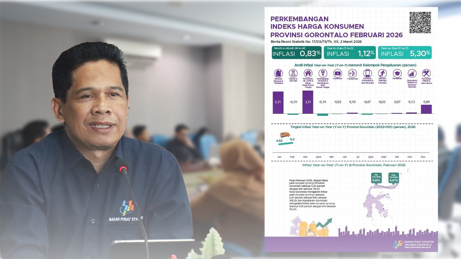 Meski angka tahunan terlihat tinggi, Wateki mengungkapkan bahwa pada bulan Februari 2026, Gorontalo sebenarnya mengalami deflasi secara bulanan (month-to-month) sebesar 0,83 persen.