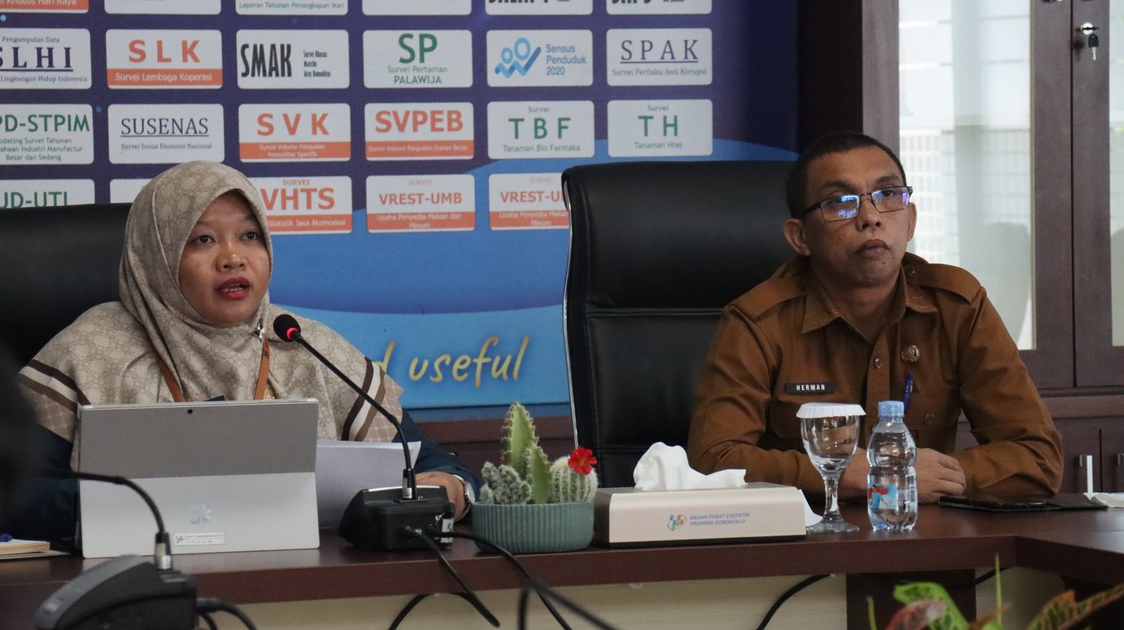 Plt. Kepala BPS Provinsi Gorontalo, Dwi Alwi Astuti saat merilis Provinsi Gorontalo mengalami inflasi secara tahunan (Year-on-Year/y-on-y) sebesar 2,44 persen, Senin (03/11/2025). Foto/ Vivi Humas BPS