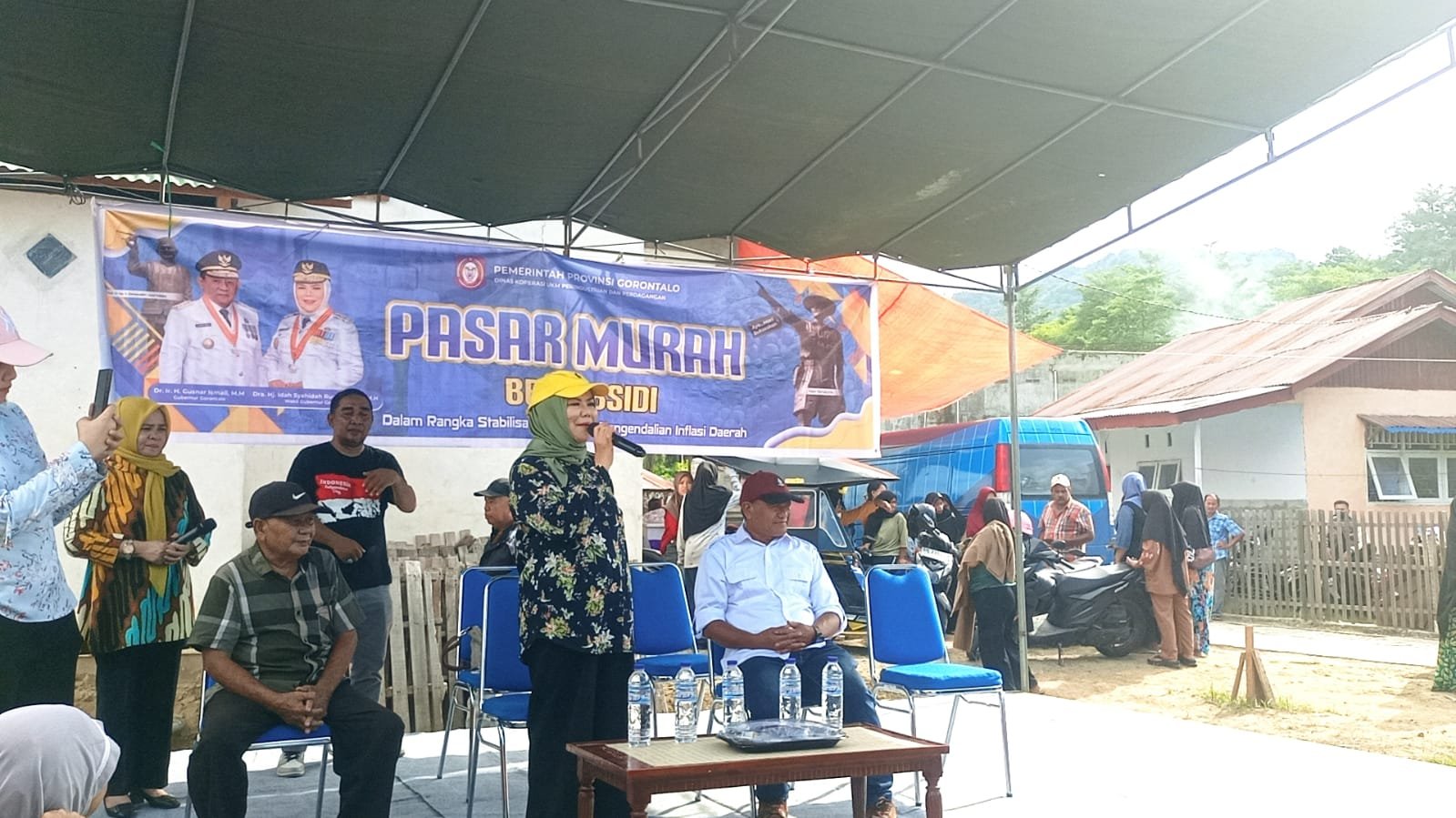 “Program ini adalah program dari pemerintah Provinsi Gorontalo Yang namanya Pasar Murah Bersubsidi Dengan harga 7 barang itu Rp90.000. Artinya ini jumlah kalau diuangkan Kalau pasar biasa ini harganya Rp240.000 Nah, pemerintah Provinsi Gorontalo memberikan subsidi Jadi masyarakat hanya membayar Rp90.000” Jelasnya