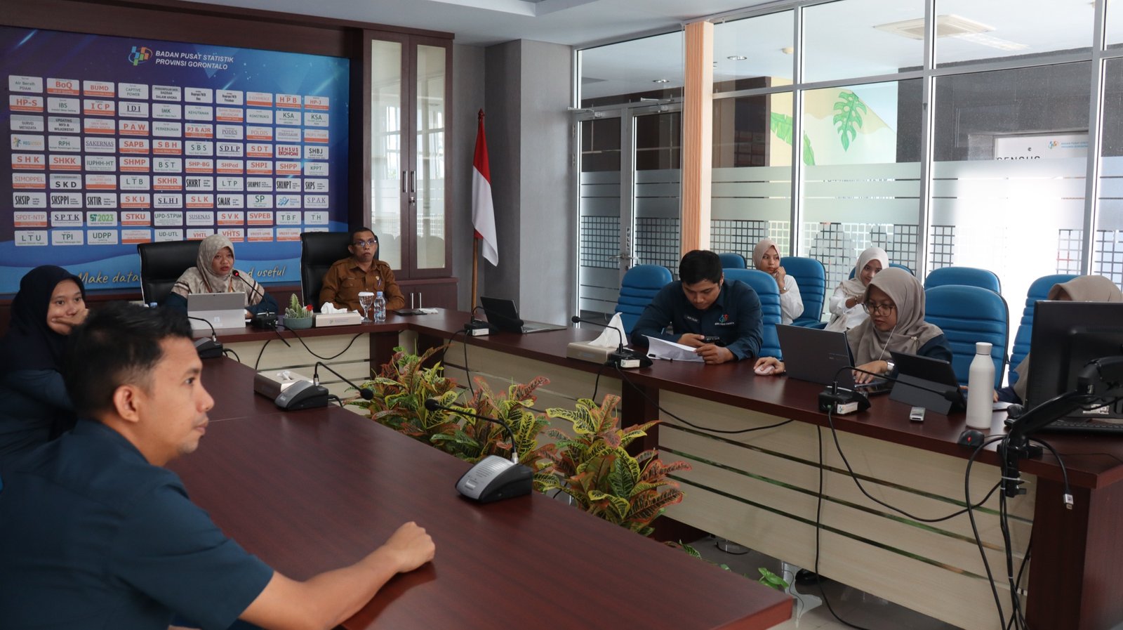 Plt. Kepala BPS Provinsi Gorontalo, Dwi Alwi Astuti saat Merilis Pergerakan penumpang angkutan laut dan pelabuhan penyeberangan (feri) di Gorontalo pada Senin (03/11/2025). Foto/ Vivi Humas BPS