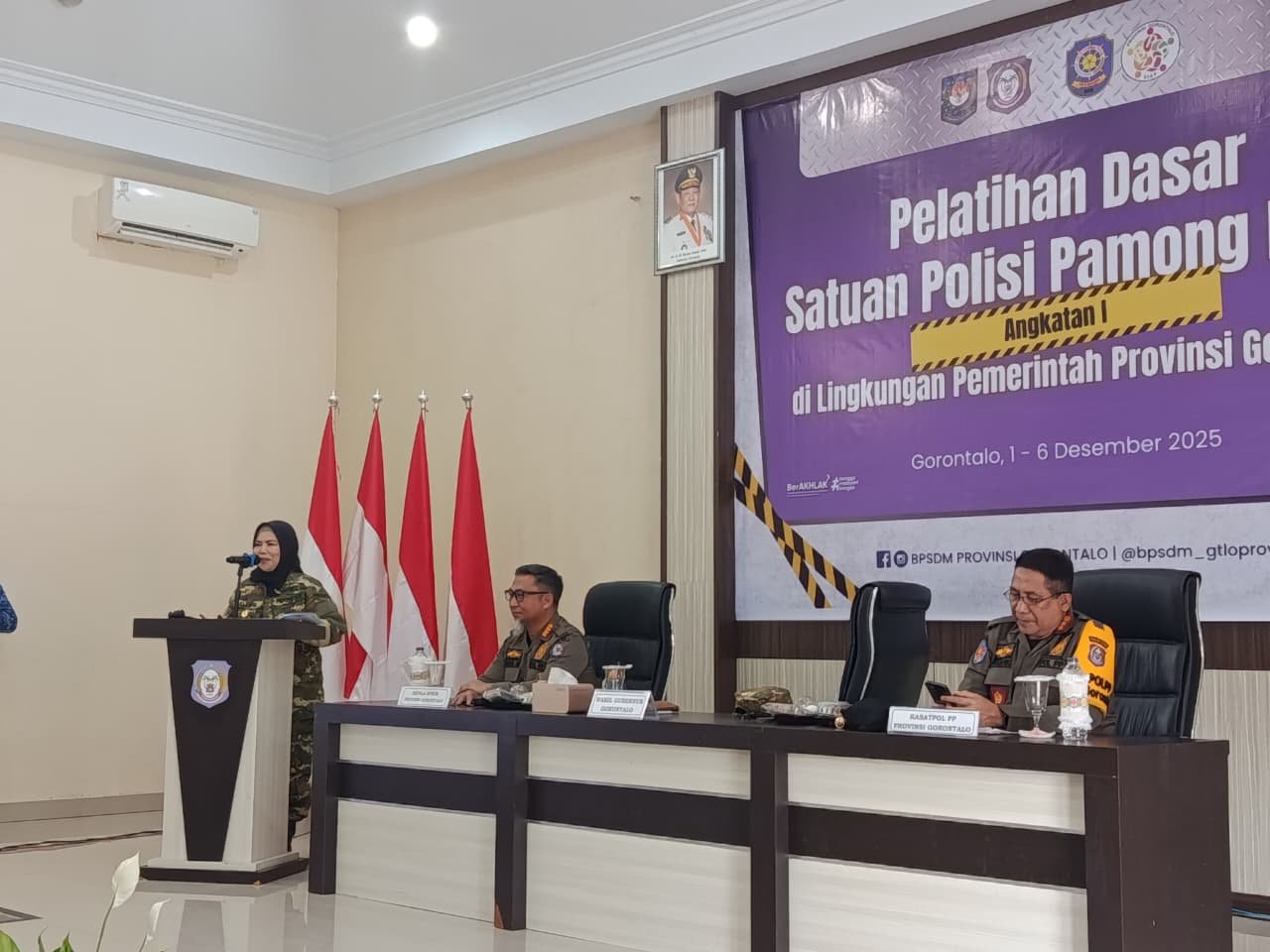 Wakil Gubernur Gorontalo, Idah Syahidah Rusli Habibie, secara resmi membuka kegiatan Pelatihan Dasar Satuan Polisi Pamong Praja (Satpol PP) di lingkungan Pemerintah Provinsi Gorontalo, Senin (01/12/2025), bertempat di aula Badan Pengembangan Sumber Daya Manusia (BPSDM) Provinsi Gorontalo.