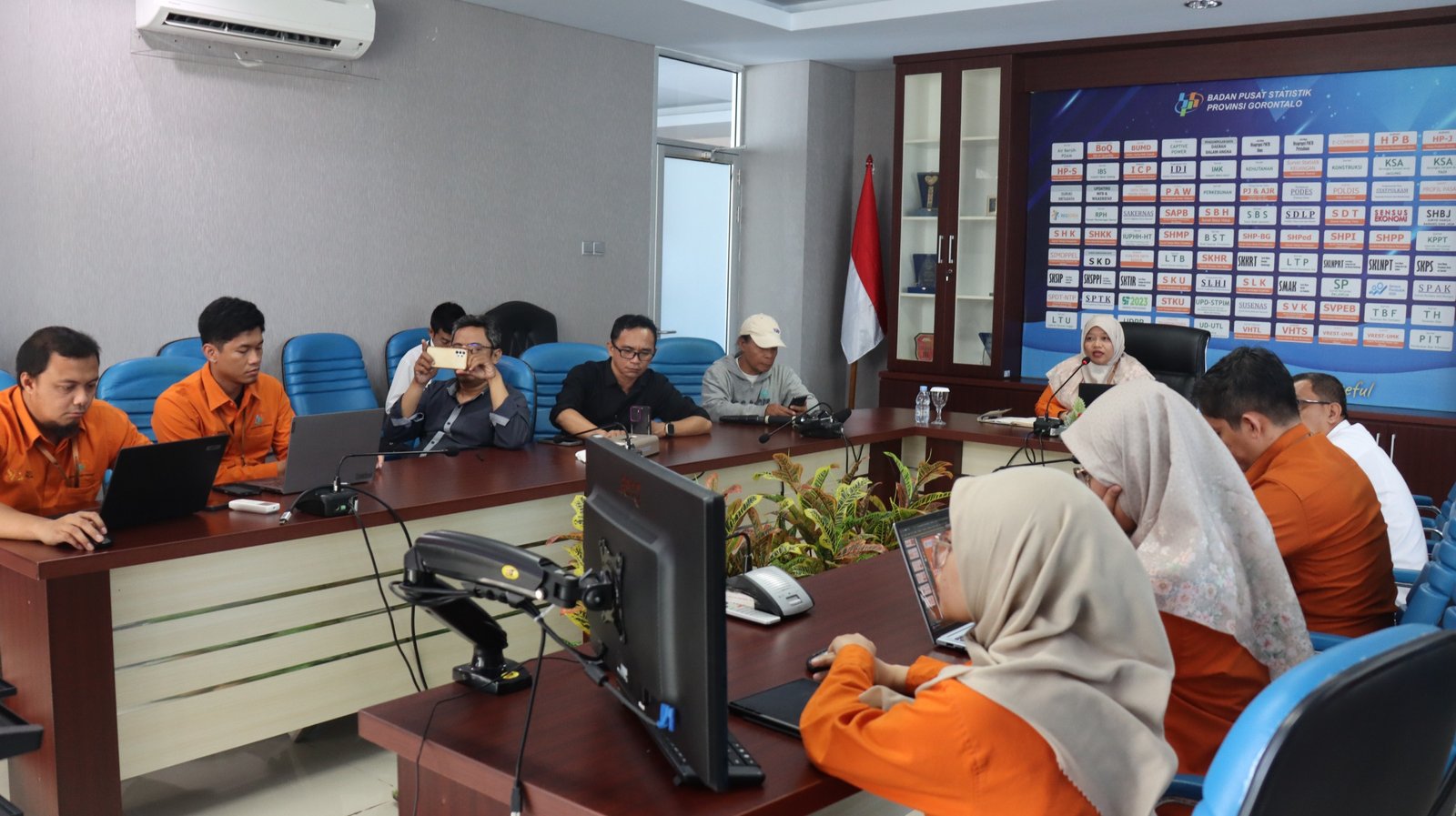Plt. Kepala BPS Provinsi Gorontalo saat merilis berita resmi statistik di kantor BPS Provinsi Gorontalo, Rabu (05/11/2025). Foto/Vivi Humas BPS.