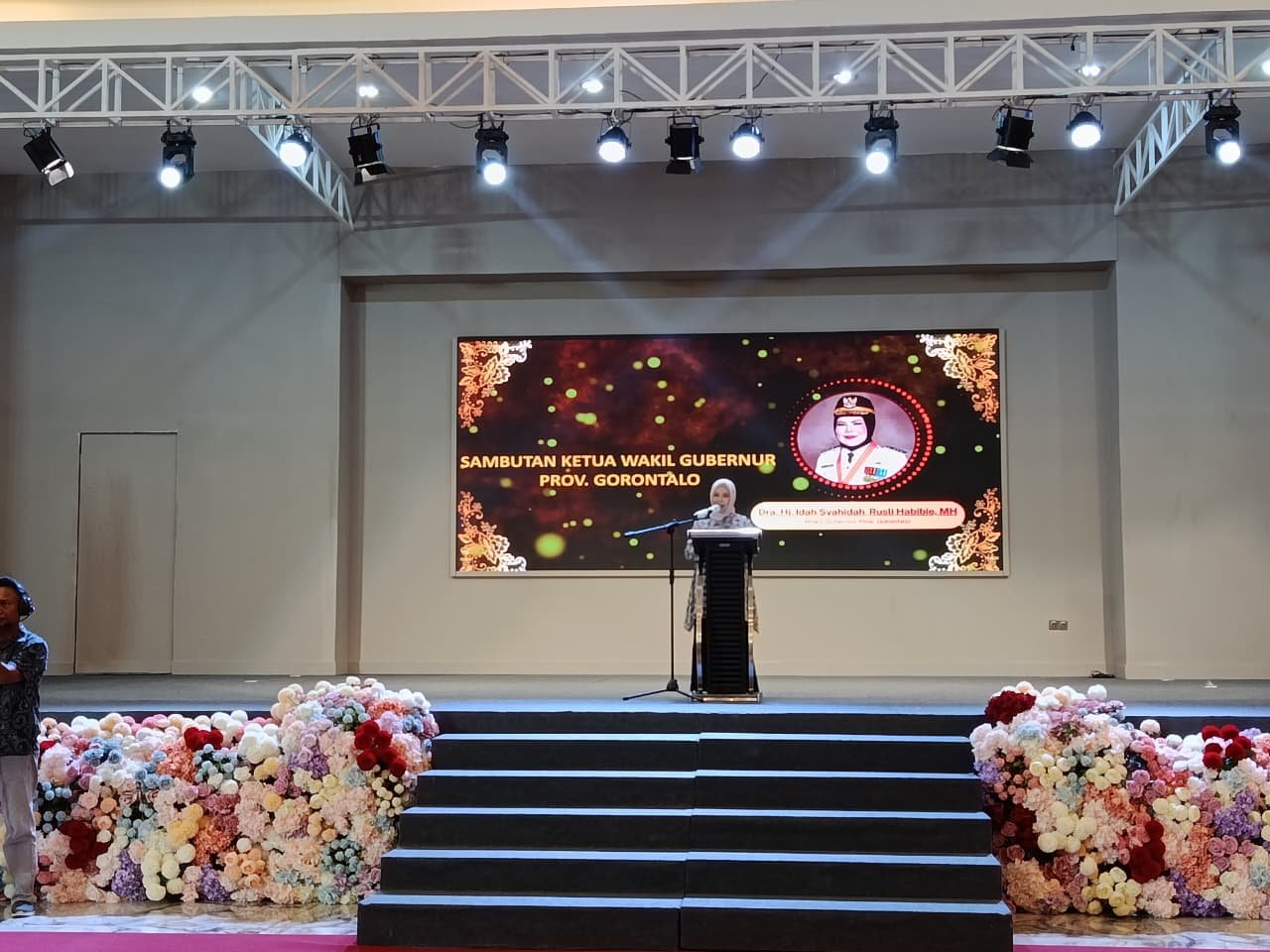 Wakil Gubernur Gorontalo Idah Syahidah Rusli Habibie Saat memberikan sambutan dan arahan pada kegitan Pelantikan Pengurus Forum Penggerak Perempuan Bina Mandiri (FPPBM) Gorontalo Masa Bakti 2025-2030 di Hulonthalo Ballroom, Sabtu (18/10/2025). Foto/Istimewa.